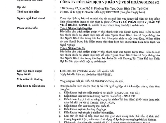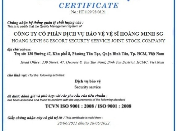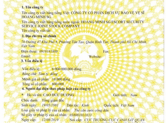 Công ty cổ phần Dịch vụ bảo vệ vệ sĩ Hoàng Minh SG hoạt động theo phương châm: Uy Tín - Tận Tâm - Chuyên Nghiệp